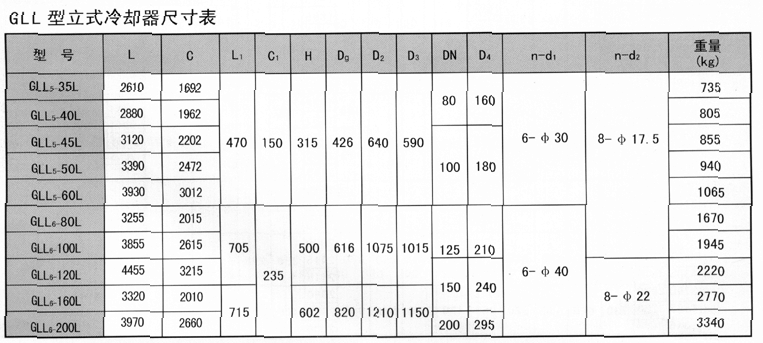 三:GLL型立式冷卻器尺寸示意圖